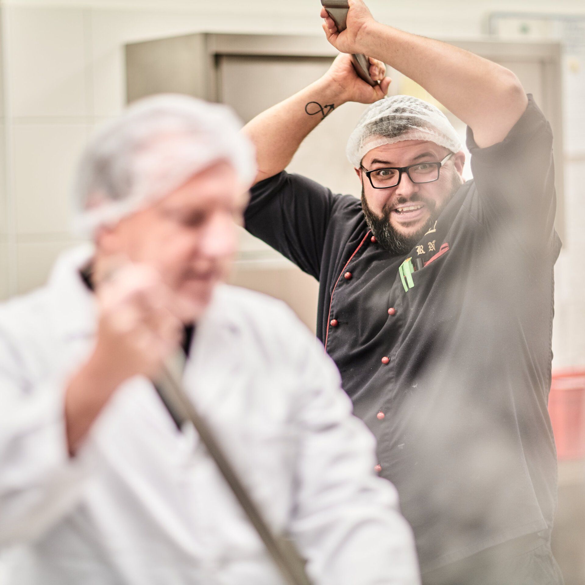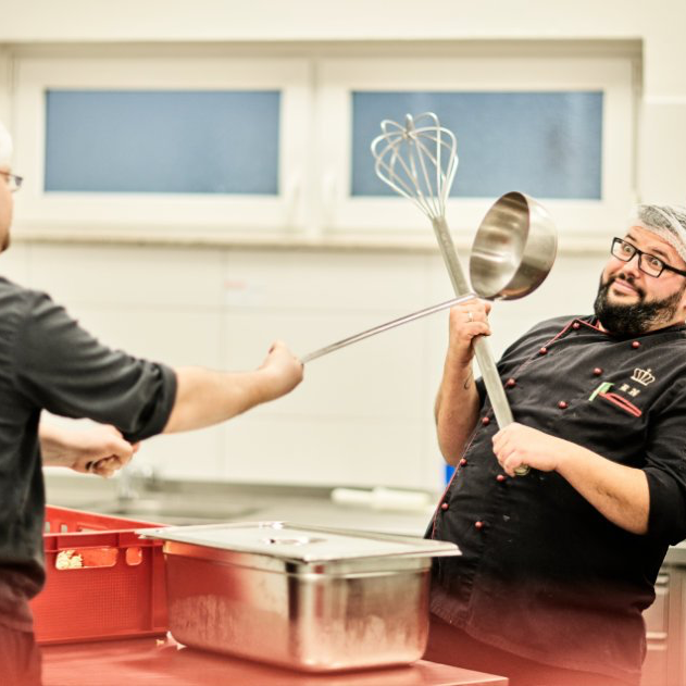 Wir sind ein hochmotiviertes Team von mehr als 20 Mitarbeitern, die jeden Tag mit viel Liebe und Herzblut frische Gerichte zaubern. Die fertigen Speisen werden direkt in die Schulen und Kindergärten geliefert und finden so direkt den Weg auf die Teller und die leeren Mägen. Ein leerer Magen studiert nicht gern. "Vom Herd direkt in die Schule" - so geht's nun seit über 10 Jahren und es wird nie langweilig. Bei aller Ernsthaftigkeit zu Ernährungswissenschaften und Klimafragen darf der Spaß natürlich nicht fehlen, denn bei einem hektischen Küchenalltag mit strikten Deadlines und To-Do-Listen darf auch gern mal gelacht werden.